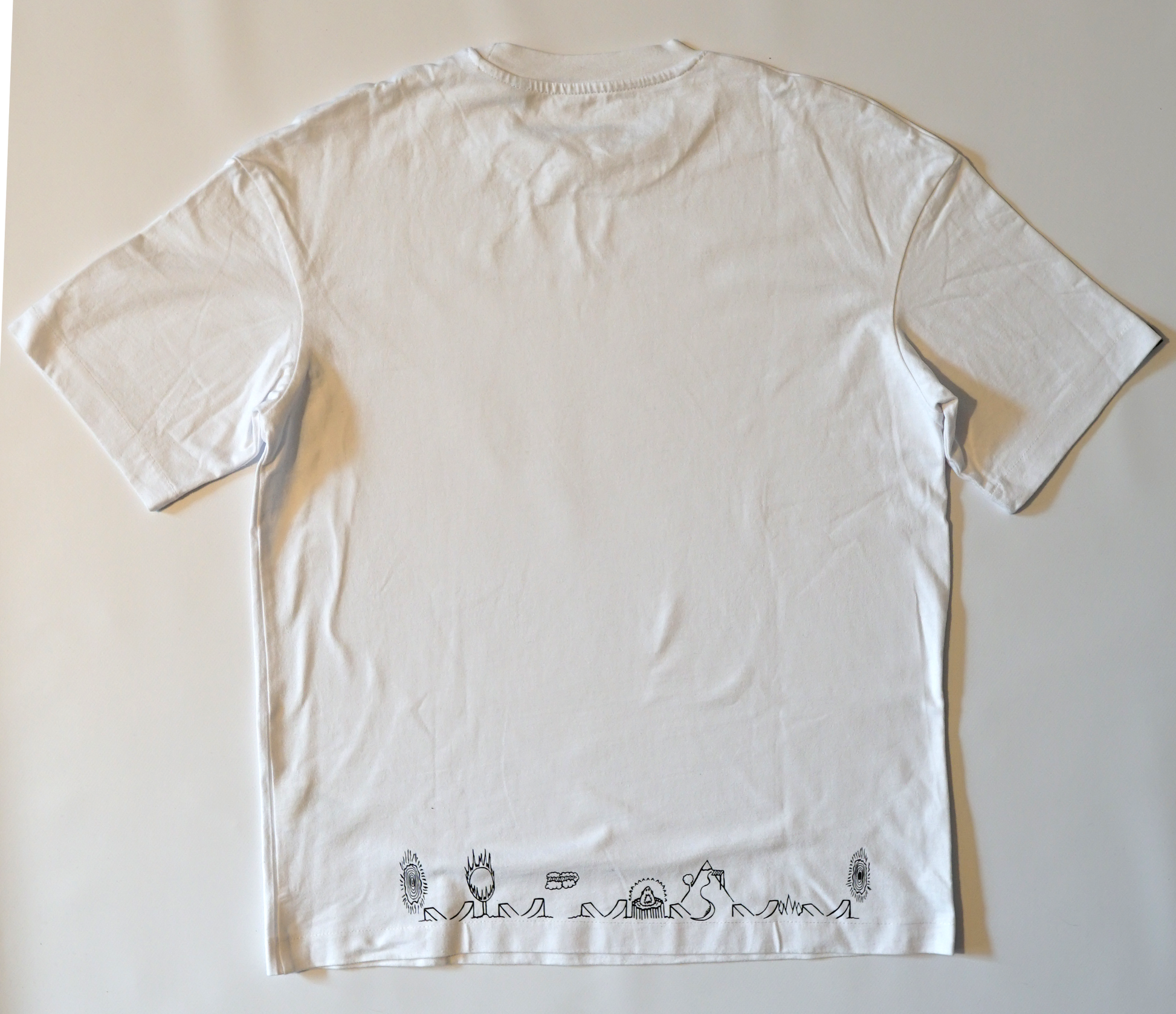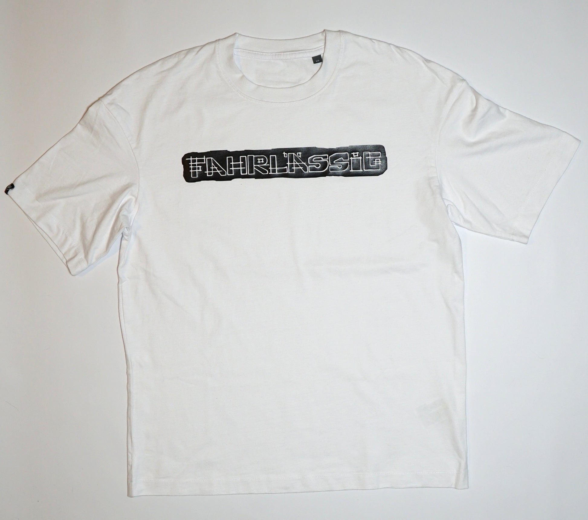 - weisses Shirt- schwarzer Transferdruck - Schriftzug vorne, Zeichnung hinten- 100% Baumwolle, 220g/m2, Oeko-Tex® Standard 100- Logo als Webetikette am rechten Ärmel- bequemer, lässiger Schnitt