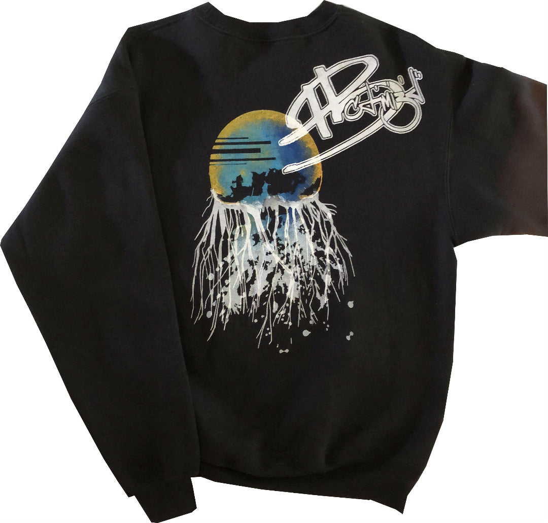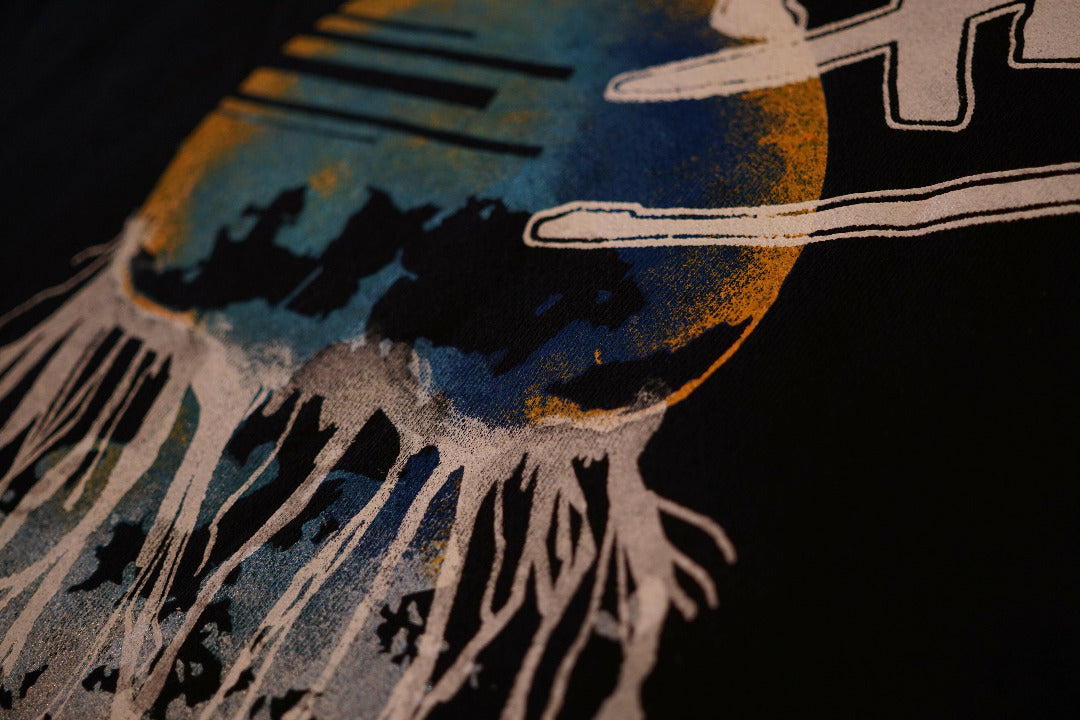 - Einzelstück - Sweatshirt - Farbiger Siebdruck auf schwarzem Stoff, grosser Druck hinten, kleiner Druck vorne - 80% Baumwolle, 20% Polyester, 405g/m2 - Siebdruckfarbe ist umweltfreundlich, kennzeichnungsfrei und vegan ;) - bequemer Schnitt - Kleidergrösse fällt normal aus.